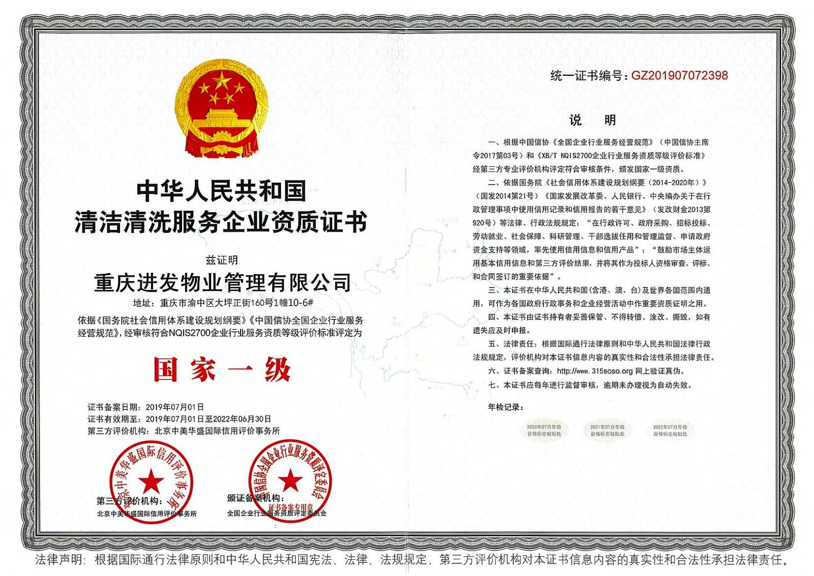 衷心感謝您對重慶進發城市管理服務有限公司的關注和支持!重慶進發城市管理服務有限公司自2001年創建以來,始終秉承“求真務實、開拓創新、銳意進取、誠實守信”的企業精神,以客戶滿意為中心,育人才、建制度、塑靈魂,在創新中求發展,在發展中不斷壯大。同時,在走向成功的道路上,始終離不開各級政府部門和客戶單位的關心與支持...